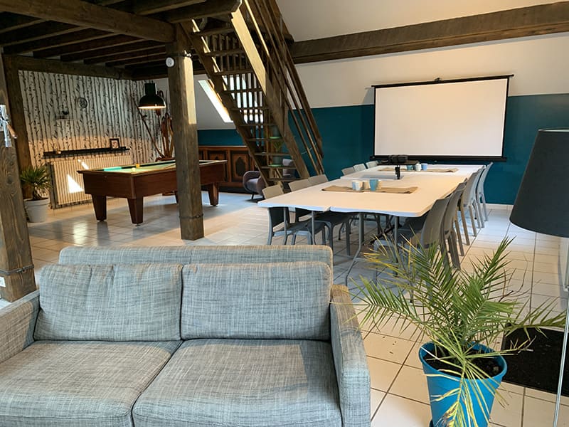 À l’arrière du Domaine, avec un extérieur et une entrée indépendante, l’Annexe se compose d’un espace de 60m2 avec coin réunion, cuisine équipée et petit salon, coin billard, sanitaires. Idéal pour un groupe jusqu’à 15 personnes.